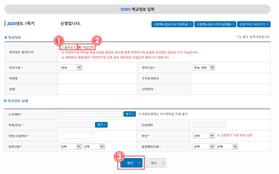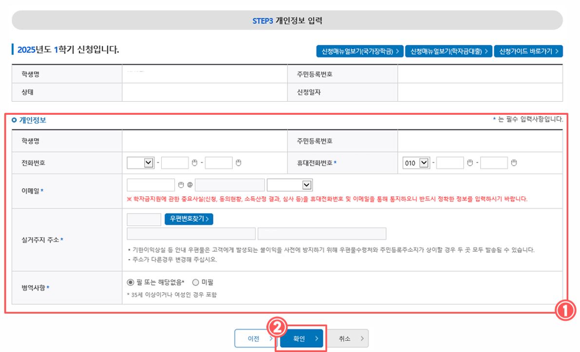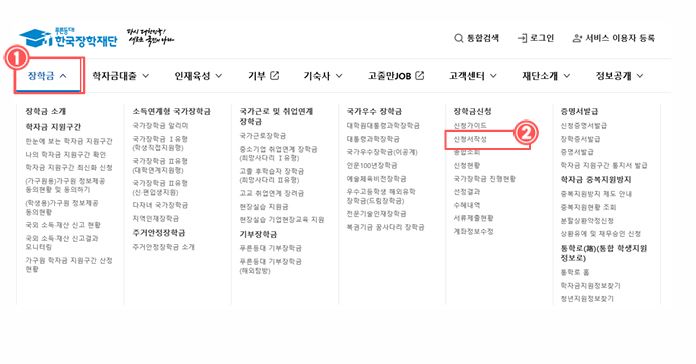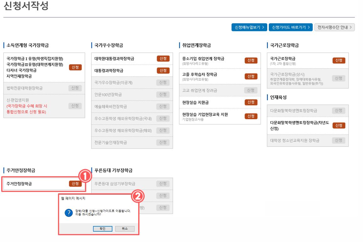 버튼을 누리면 한국장학재단 페이지로 이동합니다