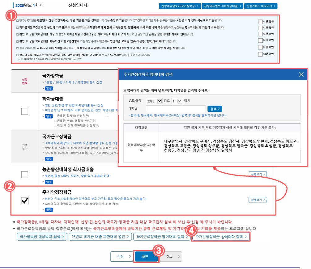 주거비 부담을 겪는 저소득 대학생들을 지원하기 위해 한국장학재단에서 제공하는 주거 안정장학금! 원거리 통학으로 인해 주거비 부담을 덜어주어 안정적인 학업 환경을 조성하는 장학금입니다. 학기마다 월 최대 20만 원까지 지원받을 수 있습니다 선착순 마감이니 조속히 신청하세요